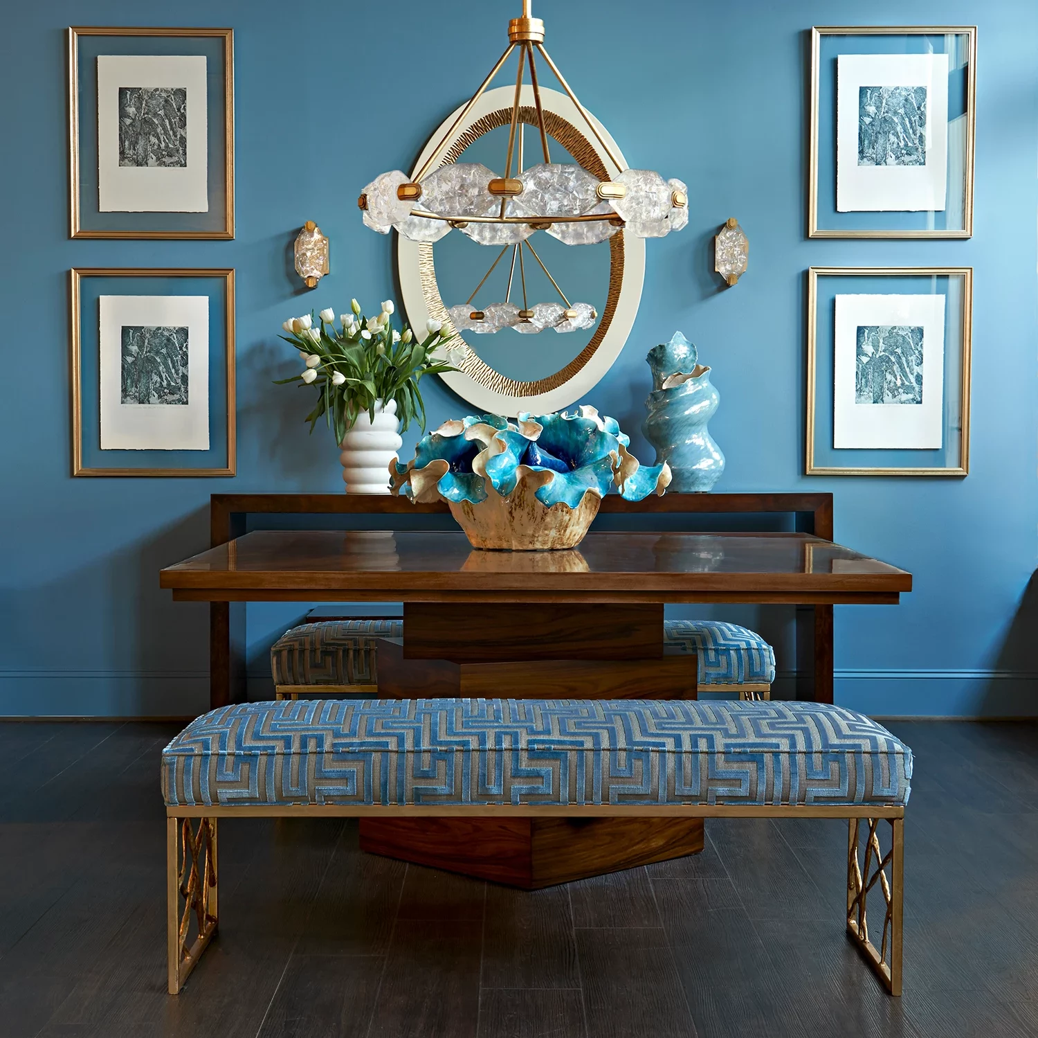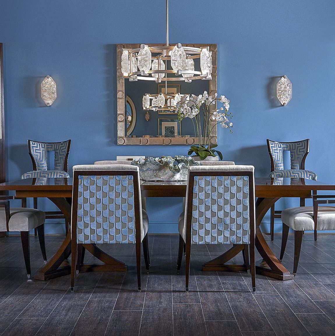 The artisans of Fine Art Lamps did such a fabulous job of achieving her vision! They truly captured the impeccable craftsmanship through the beautiful antique silver, gold, and bronze frames, as well as the organic feel of the cut glass that looks like natural quartz.