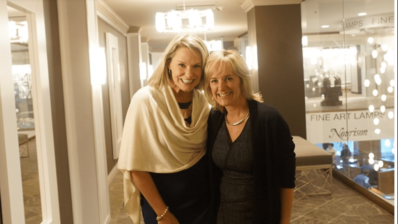 Both Allison and her colleague Libby Langdon viewed for the first time the Fine Art Lamps showroom in High Point, NC, with the reception area now lined with all of Allison’s lighting collection!